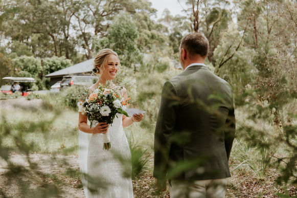 Journey into the sunlit celebration of Anne and Rhys, as they exchanged vows amidst the whispering scribly gums and the gentle hum of cicadas on a radiant day in May. The natural beauty of Jervis Bay's bushland provided the perfect backdrop for their union, and The Woods Farm, with its rustic charm adorned by modern flair, added a touch of enchantment to their love story.